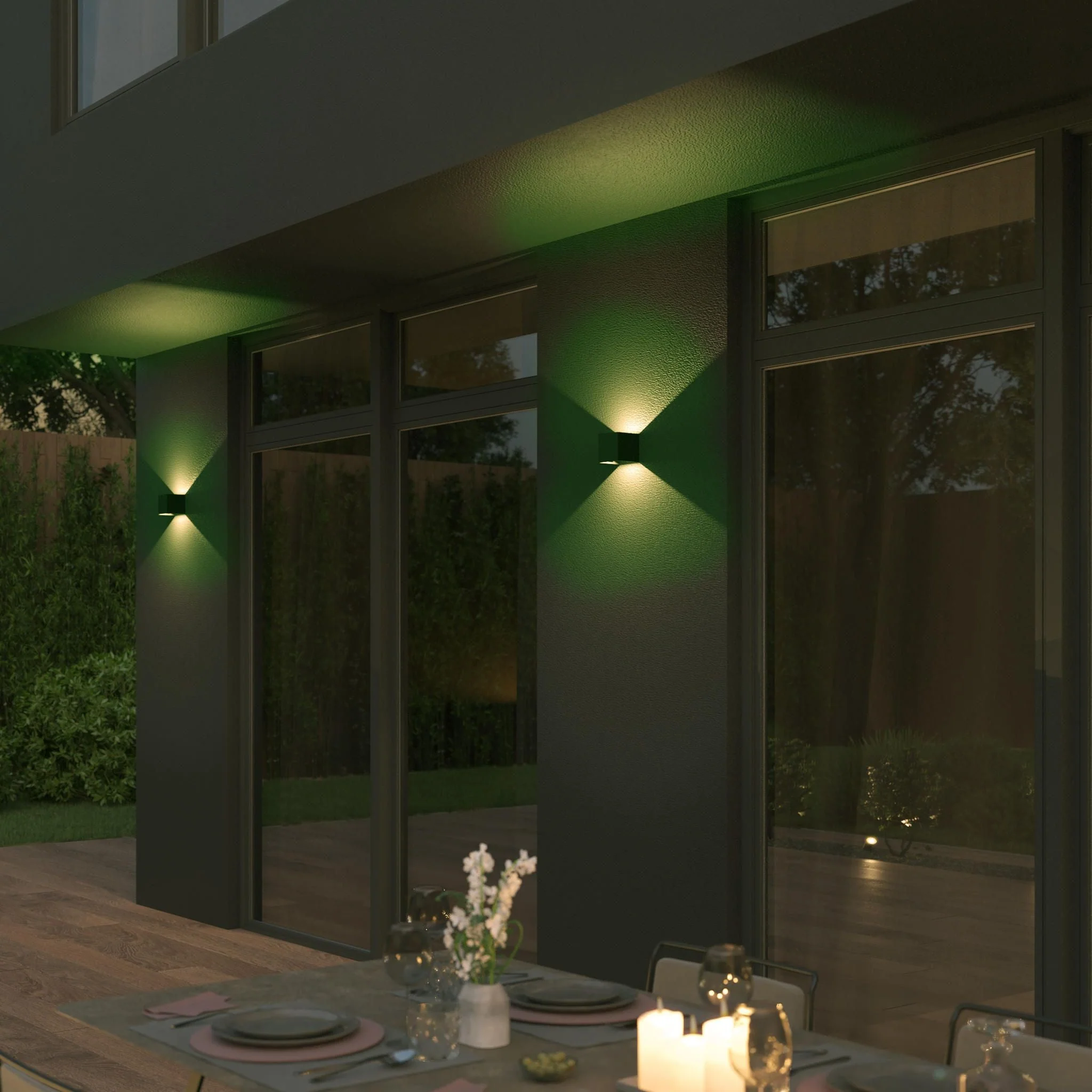 Mit der smarten LED-Wandleuchte Mara setzt du deinen Außenbereich so richtig in Szene. Die intelligente Wandleuchte vereint Funktionalität und Ästhetik und sorgt für eindrucksvoll beleuchtete Fassaden. Dank ihres Up-Down-Designs strahlt ihr Licht sowohl nach oben als auch nach unten. Die Lichtkegel sind dabei individuell einstellbar, sodass du das Lichtambiente ganz nach deinen Wünschen gestalten kannst. Egal, ob du eine sanfte Akzentbeleuchtung wünschst oder deine Umgebung in hellem Licht erstrahlen lassen möchtest, Mara lässt sich flexibel anpassen und fügt sich mit ihrer eckigen Form ideal in verschiedene architektonische Stile ein. Aufgrund ihres hochwertigen Gehäuses aus Aluminium ist die smarte Wandleuchte besonders robust und kann, dank Schutzklasse IP65, bedenkenlos im Freien eingesetzt werden. Die integrierten LEDs sorgen dabei für eine effiziente und energiesparende Beleuchtung, die gleichzeitig eine hervorragende Lichtqualität bietet. Ob an der Hauswand in deinem Eingangsbereich, auf der Terrasse oder dem Balkon – Mara sorgt für Sicherheit und schafft gleichzeitig eine einladende Atmosphäre zum Wohlfühlen. Dank tint white+color kannst du ganz einfach aus verschiedenen Weißtönen wählen, von behaglichem superwarmweißem Licht bis hin zu aktivierendem Tageslicht. Darüber hinaus stehen bis zu 16 Millionen Farben zur Auswahl. Wie du dein Licht steuerst, überlassen wir dabei dir. Starte zum Beispiel ganz einfach, ohne Internetzugang, über die tint Fernbedienung und stelle verschiedene Farben sowie voreingestellte Lichtszenen ein: Ob gemütliches, warmweißes Licht für einen lauen Sommerabend oder bunte Partybeleuchtung für ein fröhliches Gartenfest – tint ist sofort startklar und sorgt immer für die richtige Stimmung. Einfacher geht’s nicht. Dank der intelligenten Dual-Chip-Technologie mit Zigbee und Bluetooth kannst du deine Beleuchtung wahlweise auch per Bluetooth über die kostenlose „tint Smart Light“ App steuern. Hierfür benötigst du keine weiteren Geräte und kannst sofort loslegen. Dank ZigBee 3.0 ist tint darüber hinaus in gängige Smarthome-Systeme mit Zigbee-Gateway einbindbar und bietet damit viele weitere Funktionen, wie zum Beispiel die Zeitsteuerung oder Kontrolle von unterwegs. tint hört außerdem aufs Wort: Steuere dein Licht bequem per Amazon Alexa mit allen Echo-Geräten mit integriertem Zigbee Smarthome-Hub, zum Beispiel Echo 4. Generation oder Echo Plus.